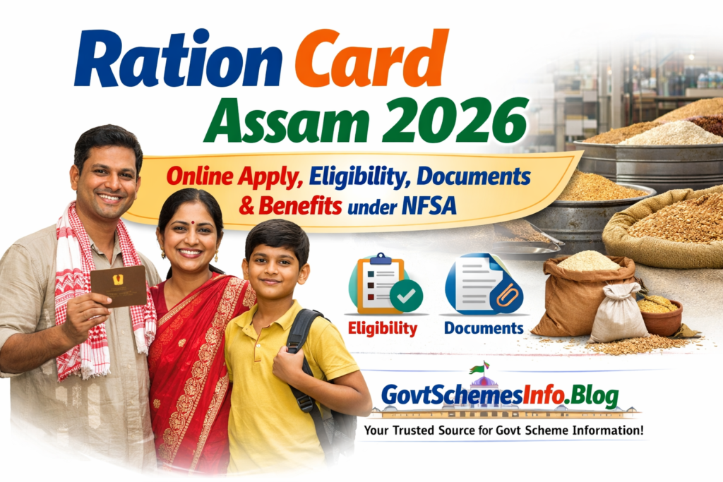 This step-by-step guide of GovtSchemesInfo.blog provides the most recent eligibility criteria, required documents, types of cards, the online application procedure, and official sources for Assam residents in 2026.
